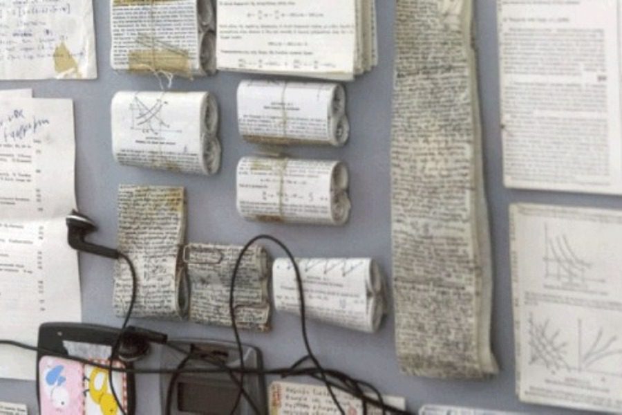 Σε προθήκες στο ΑΠΘ «εκτίθενται» πλέον διάφορα κατασχεμένα σκονάκια φοιτητών, που μεταξύ άλλων περιέχουν από εξισώσεις και λύσεις αποτυπωμένες σε μικροσκοπικούς παπύρους μέχρι κείμενα γραμμένα γραμμένα σε χαρτομάντιλα ή σμικρύνσεις.