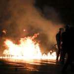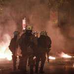 Οι αντιεξουσιαστές επιτέθηκαν με πέτρες και καδρόνια στις αστυνομικές δυνάμεις και έβαλαν φωτιές σε κάδους.