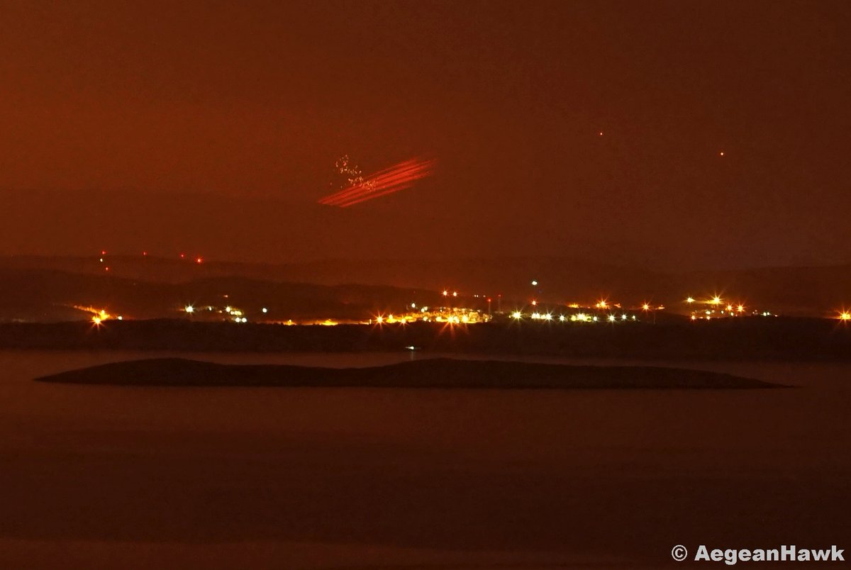 Πυκνά αντιαεροπορικά πυρά έκαναν την νύχτα μέρα απέναντι από την Χίο, στα 65 χλμ η απόσταση από τον φωτογραφικό φακό του aegean hawk.