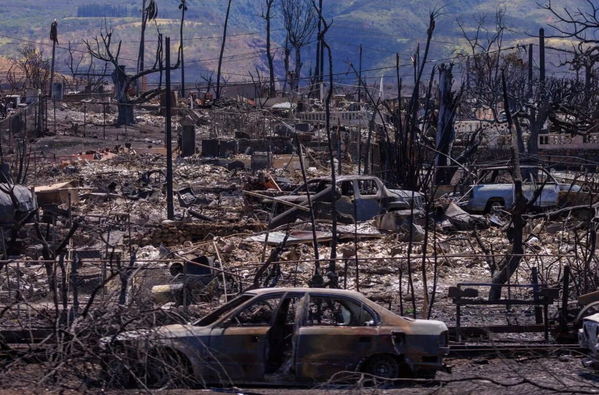 Η Λαχέινα, στα δυτικά παράλια του Μάουι, καταστράφηκε σχεδόν όλη από τις φλόγες. Χιλιάδες κτίρια καταστράφηκαν, πολλά μετατράπηκαν σε γκρίζους σωρούς στάχτης.