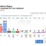 Κατά μία μονάδα αύξησε η Νέα Δημοκρατία το προβάδισμά της σε βάρος του ΣΥΡΙΖΑ στην πρόθεση ψήφου, επαναφέροντας την διαφορά σε διψήφιο επίπεδο, σύμφωνα με την νεότερη δημοσκόπηση της Pulse για τον ΣΚΑΪ.