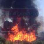 Σύμφωνα με τις πρώτες πληροφορίες από πηγές της Πυροσβεστικής, δεν φαίνεται, τουλάχιστον αυτήν την ώρα, να υπάρχει κίνδυνος επέκτασης της φωτιάς.