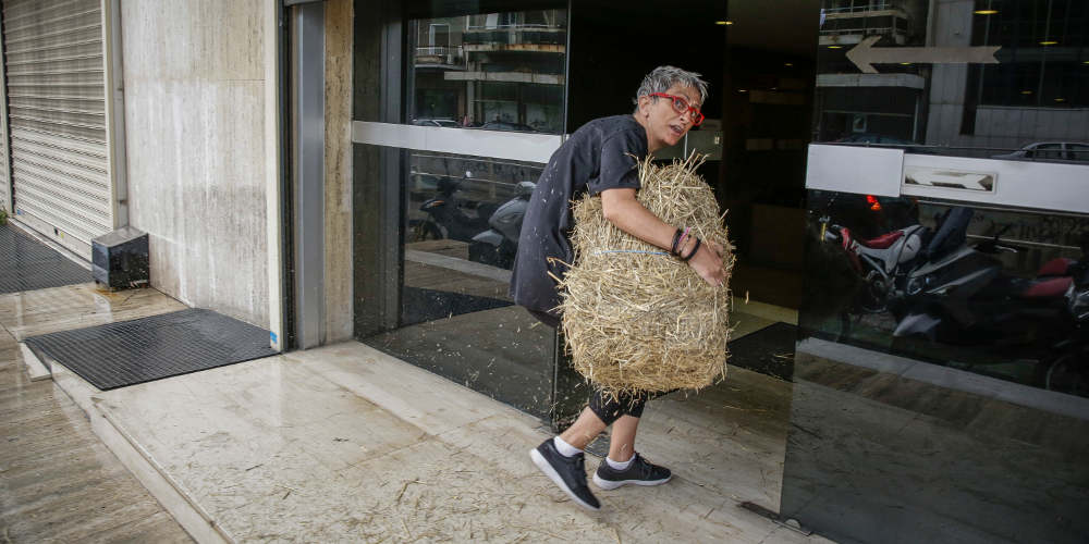 Ακτιβιστές επιτέθηκαν στα γραφεία των Ανεξάρτητων Ελλήνων στη λεωφόρο Συγγρού πετώντας σανό.