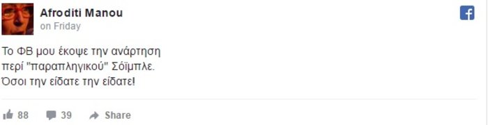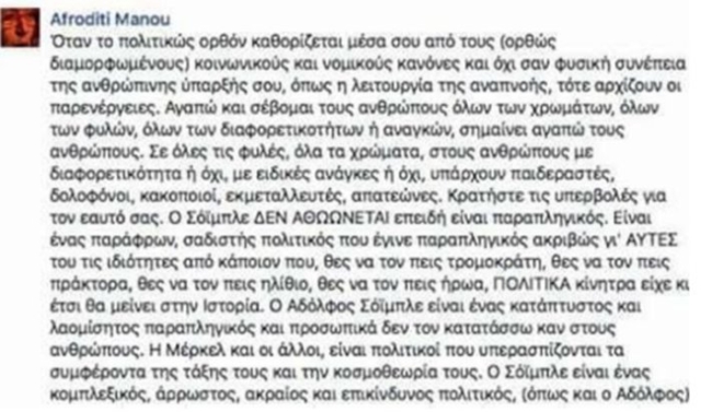 Μετά την αφαίρεση της ανάρτησης η Αφροδίτη Μάνου έγραψε: