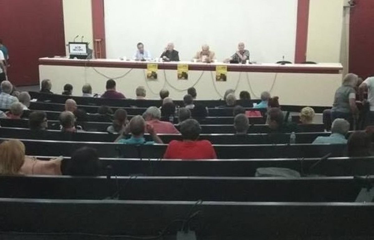 Αντιθέτως, μέσα στην εκδήλωση επικρατούσε… απόλυτη ηρεμία: Η προσέλευση ήταν εξαιρετικά χαμηλή, όπως φαίνεται και στα φωτογραφικά στιγμιότυπα.