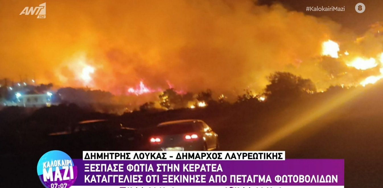«Έπεσαν δύο φωτοφολίδες, μία κόκκινη και μία κίτρινη και αμέσως εκδηλώθηκε η φωτιά πολύ κοντά στα σπίτια. Υπήρξε εντολή εκκένωσης. Μία προσπάθεια για εμπρησμό έγινε στο Σούνιο με ύποπτο όχημα, μία την Δευτέρα στον Άγιο Κωνσταντίνο και είχαμε και τρίτη προσπάθεια σήμερα με φωτοβολίδες. Υπήρχαν δύο ύποπτα οχήματα που δόθηκαν τα νούμερα στην αστυνομία και το ερευνούν. Απειλήθηκε το Δασκαλειό», σημείωσε στην εκπομπή Ώρα Ελλάδας του Open ο δήμαρχος Λαυρεωτικής, Δημήτρης Λουκάς.