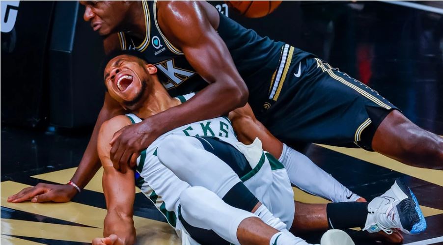 Ο Greek Freak προσγειώθηκε πολύ άσχημα στο παρκέ στα 7′ για το τέλος της τρίτης περιόδου με την Ατλάντα, μένοντας εκεί για αρκετή ώρα και πιάνοντας το γόνατό του, δίχως να επιστρέψει ξανά στο ματς.
