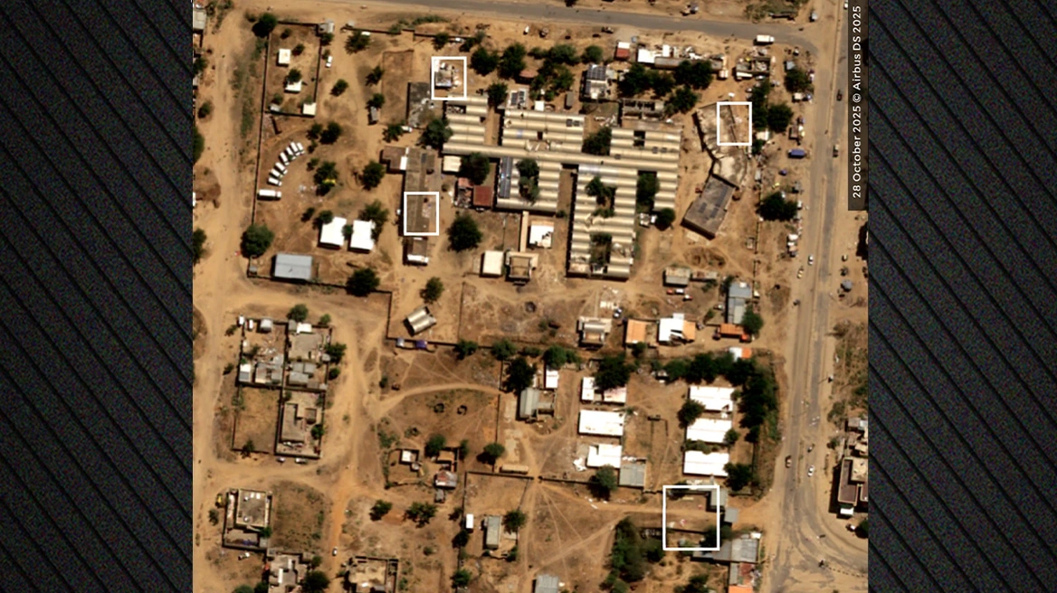 Η ανάλυση των δορυφορικών εικόνων που συλλέχθηκαν στις 28 Οκτωβρίου 2025 από νοσοκομείο σε συνοικία του Ελ Φάσερ δείχνει τουλάχιστον τέσσερις νέες συστάδες αντικειμένων που δεν ήταν ορατές σε εικόνες των προηγούμενων ημερών. Ορισμένα αντικείμενα έχουν μέγεθος περίπου 1,1 με 1,9 μέτρα.