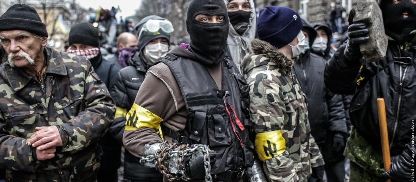 Ηδη νεοναζί του Κιέβου πραγματοποιούν συγκέντρωση κατά της Ρωσίας. Χιλιάδες Ουκρανοί από τις οργανώσεις «Ελευθερία», «Δεξιός Τομέας»,«Εθνικό Σώμα» «Τάγμα Αζόφ» βρίσκονται επί ποδός πολέμου.
