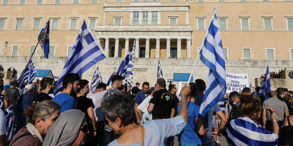 Σε εξέλιξη βρίσκεται η συγκέντρωση για τη Μακεδονία στο Σύνταγμα. Εκατοντάδες άτομα βρίσκονται αυτή τη στιγμή μπροστά από το μνημείο του Άγνωστου Στρατιώτη, κρατούν ελληνικές σημαίες και εκφράζουν την αντίθεσή τους στην συμφωνία των Πρεσπών.