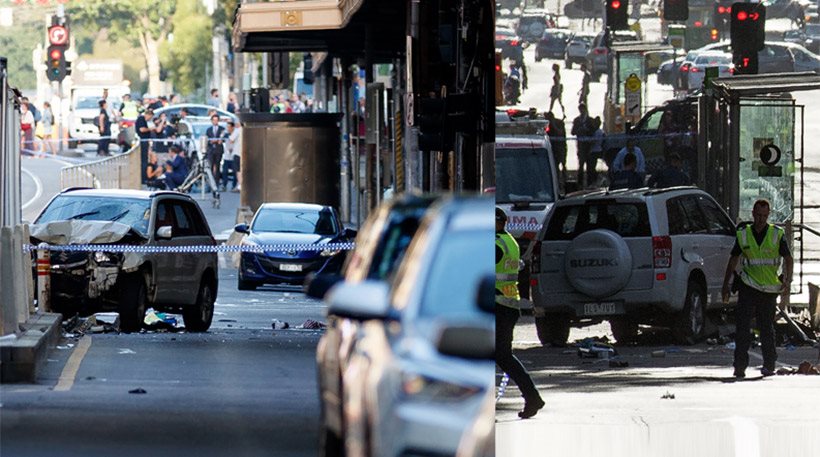 Το αυτοκίνητο έπεσε πάνω σε πεζούς λίγο πριν τις 5 το απόγευμα (τοπική ώρα) στην οδό Φλίντερς μπροστά από σταθμό τρένου σε μια περιοχή που θεωρείται από τις πιο πολυσύχναστες της πόλης.