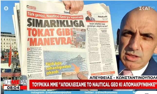 ΗΆγκυρα συνεχίζει τις προκλήσεις και κλιμακώνει τα παιχνίδια εντυπώσεων με τα τουρκικά ΜΜΕ να πανηγυρίζουν πως φρεγάτα της Τουρκίας έδιωξε το ερευνητικό πλοίο Nautical Geo από την Κύπρο.