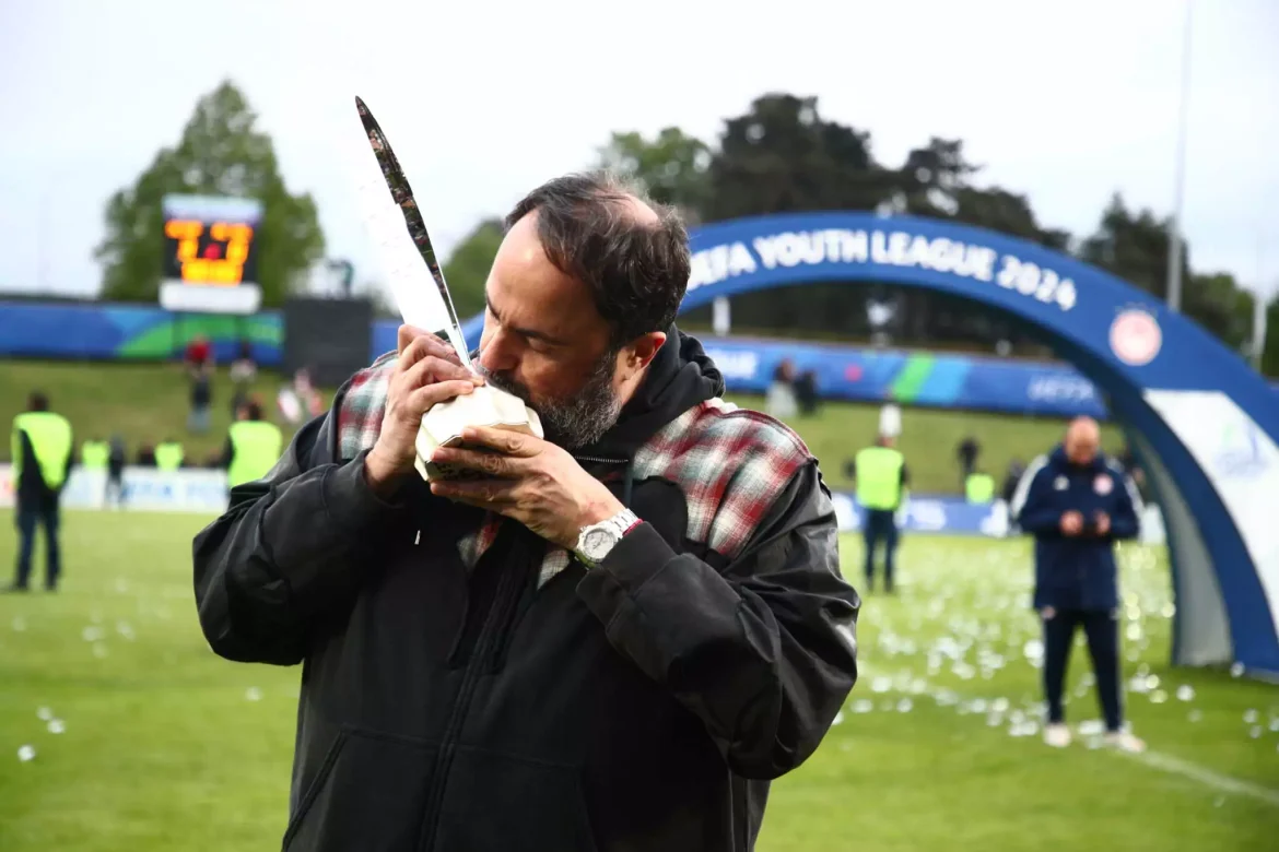 Ο Βαγγέλης Μαρινάκης σήκωσε στον ουρανό της Νιόν το τρόπαιο του Youth League που κατέκτησε ο Ολυμπιακός, στον τελικό της διοργάνωσης απέναντι στη Μίλαν.