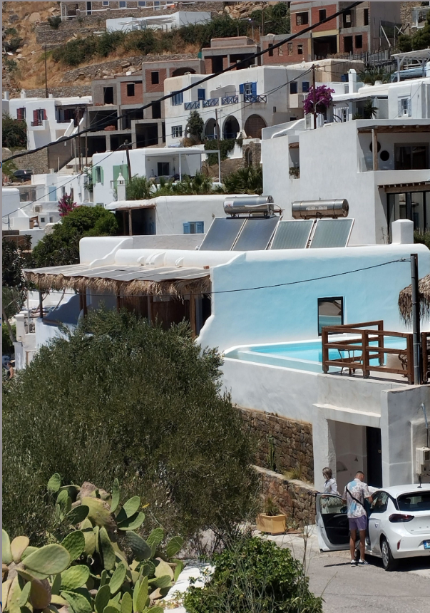 Σημειώνεται ότι το ακίνητο βρίσκεται σε προνομιακή τοποθεσία, «γεγονός που εξασφαλίζει θέα στη θάλασσα, τη Δύση, τις Δήλες, τη Χώρα καθώς επίσης και εύκολη πρόσβαση στις παραλίες Άγιος Στέφανος και Χουλάκια».