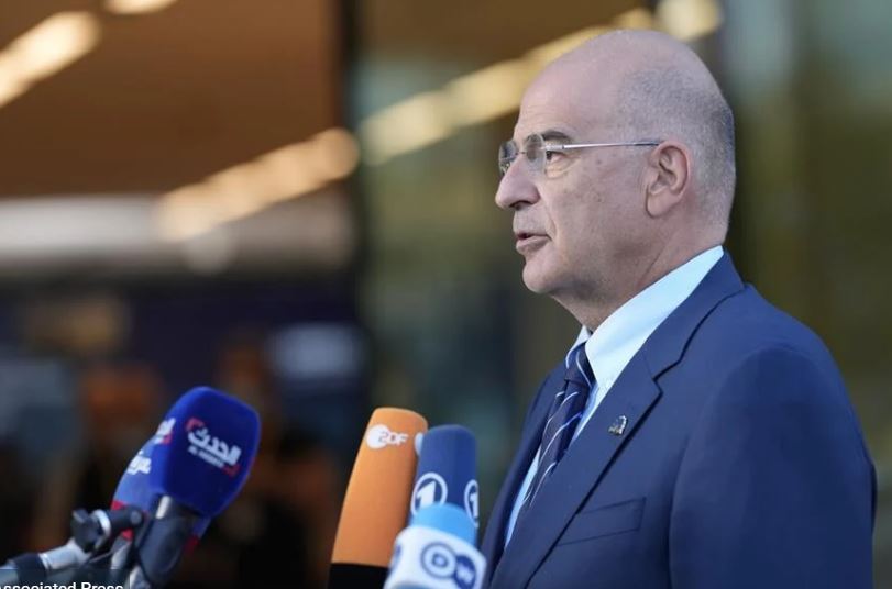 Για τη στάση του σε σχέση με το ζήτημα της αποστολής αμυντικού υλικού στην Ουκρανία και τη φημολογία για αντιρρήσεις του είπε ότι είναι και παραμένει υπουργός Εξωτερικών της κυβέρνησης Μητσοτάκη και πως εάν είχε διαφορετική άποψη η οδός που θα έπρεπε να είχε ακολουθήσει είναι προφανής. «Η ΕΕ με συντριπτική πλειοψηφία αποφάσισε να ενισχύσει την Ουκρανία με κάθε τρόπο και αυτό κάναμε κι εμείς δίνοντας αμυντικό υλικό σε μια χώρα που υφίσταται εισβολή. Η Ελλάδα πορεύεται στις διεθνείς της σχέσεις με διακριτές αρχές, για εμάς η εδαφική ακεραιότητα των κρατών είναι ιερό ευαγγέλιο, αυτό είναι και το εθνικό μας συμφέρον πέρα και από θέση αρχής» είπε.