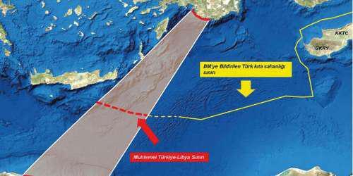 Θαλάσσια σύνορα με τη Λιβύη φαίνεται πως είναι η επιδίωξη της Τουρκίας, καθώς σύμφωνα με δημοσιεύματα του τουρκικού Τύπου ο υπουργός Άμυνας Χουλουσί Ακάρ παρουσίασε χάρτες στην Λιβυκή κυβέρνηση για να αποδείξει ότι η Ελλάδα επιχειρεί να σφετερισθεί όχι μόνο την τουρκική, αλλά και τη λιβυκή υφαλοκρηπίδα, για να στερήσει έτσι τα «κοινά σύνορα» μεταξύ των δύο χωρών.