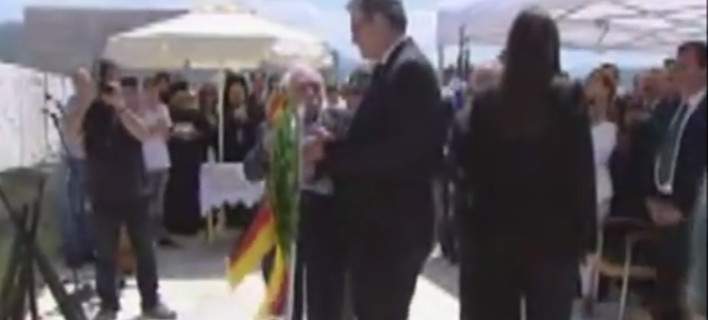 Μετά από μερικά λεπτά αμηχανίας τη λύση έδωσε ο Μανώλης Γλέζος, ο οποίος όπως φαίνεται στο βίντεο πήρε από το χέρι τον Γερμανό πρέσβη, παρακάμπτοντας την κυρία Κωνσταντοπούλου και του έδωσε το στεφάνι για να το καταθέσει στο μνημείο των εκτελεσθέντων.