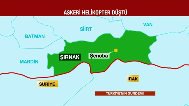 Μεταφορικό ελικόπτερο του τουρκικού Στρατού τύπου AS 532UL Cougar (από τα 21 που διαθέτει συνολικά) κατέπεσε και συνετρίβη στην περιοχή Σενόμπα, στην επαρχία Σιρνάκ της Τουρκίας κοντά στα τουρκο-ιρακινα σύνορα με αποτέλεσμα να σκοτωθούν 13 άτομα που επέβαιναν στο ελικόπτερο μεταξύ αυτών και υψηλόβαθμοι στρατιωτικοί.