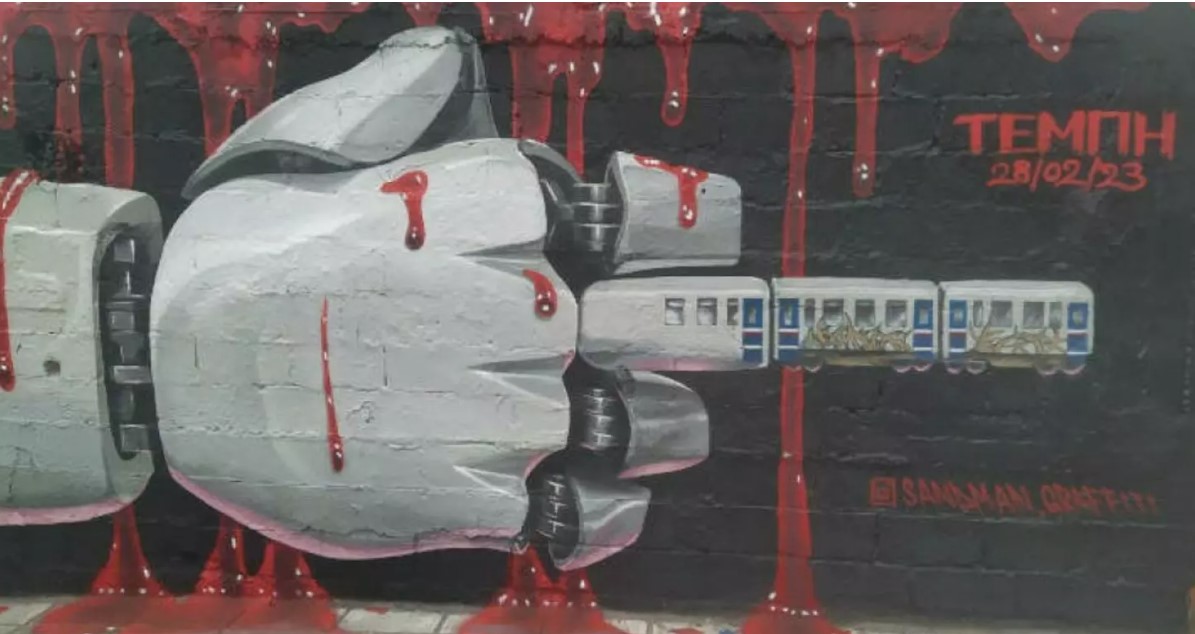 Ο καλλιτέχνης, που υπογράφει με το ψευδώνυμο Sandman, με ανάρτησή του στο instagram εξήγησε τι τον οδήγησε σε αυτή την κίνηση: «Αφιερωμένο σε όσους έφυγαν αναίτια. Αφιερωμένο” σε όσους ευθύνονται… Για να μην ξεχάσουμε, να μην εφησυχάσουμε, μέχρι οι υπεύθυνοι να πληρώσουν, μέχρι να μπορούμε να ταξιδεύουμε χωρίς να παίζουμε τη ζωή μας κορώνα-γράμματα, μέχρι η ζωή να αποκτήσει περισσότερη αξία από το χρήμα».