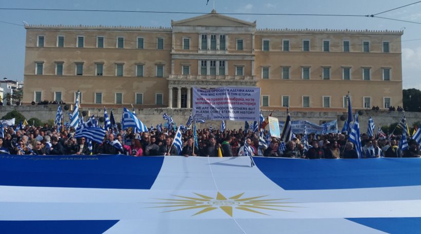Μία εικόνα που έκανε το γύρο του κόσμου μέσω των social media, με φόντο το σύνθημα που αναγραφόταν στο πανό για τη Μακεδονία και τους Σκοπιανούς.