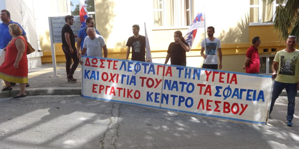 Με συνθήματα όπως «δώστε λεφτά για την υγεία και όχι για του ΝΑΤΟ τα σφαγεία», «τέρμα πια στην κοροϊδία, δουλειά για όλους-μόρφωση-υγεία» οι συγκεντρωμένοι υποδέχτηκαν στην είσοδο τον υπουργό.