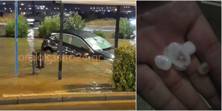 Στη Θεσσαλονίκη πλημμύρισαν δρόμοι και «βούλιαξαν» ΙΧ, ενώ στα Τρίκαλα όπως και στην Ηπειρο, έριξε σφοδρό χαλάζι.