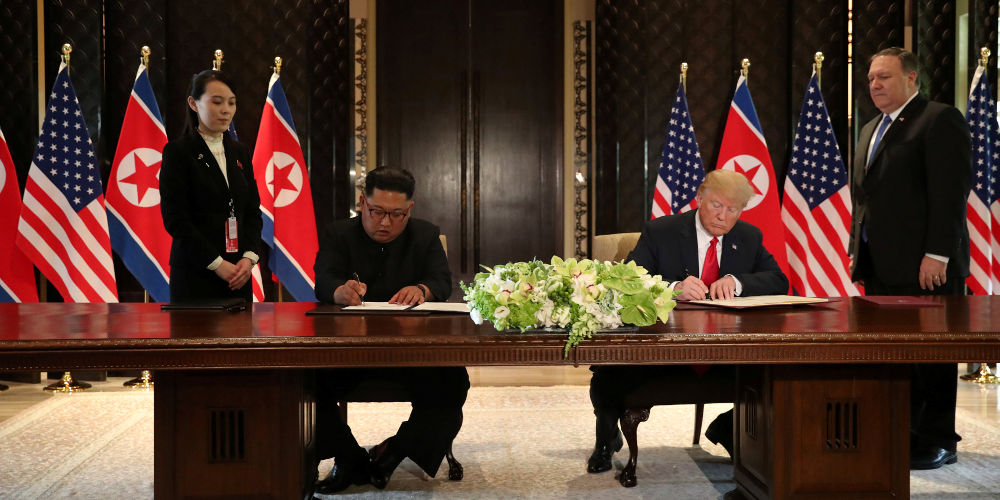 Ο Τραμπ πρόβαλε τη μεγάλη του αυτοπεποίθηση πριν από τη σύνοδο κορυφής, διαβεβαιώνοντας μέσω Twitter την Κυριακή ότι η συνάντηση προσφέρει μια ευκαιρία για ένα «υπέροχο αποτέλεσμα για τη Βόρεια Κορέα και όλο τον κόσμο».