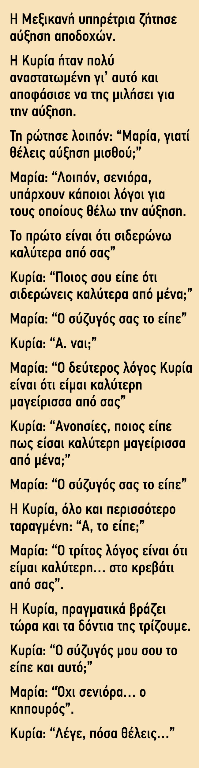Lifestyle ΑνέκδοταΑνέκδοτο: Η Μεξικανή υπηρέτρια ζήτησε αύξηση αποδοχών… access_time9 έτη πριν 1069.gr