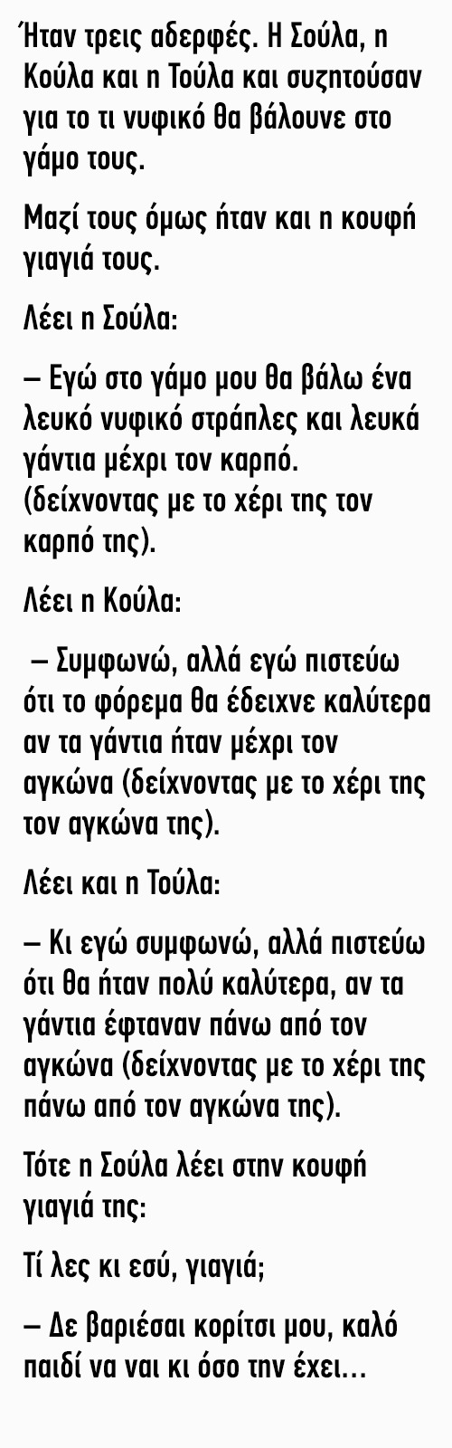 Ανέκδοτο: Ήταν τρεις αδερφές. Η Σούλα, η κούλα και η Τούλα