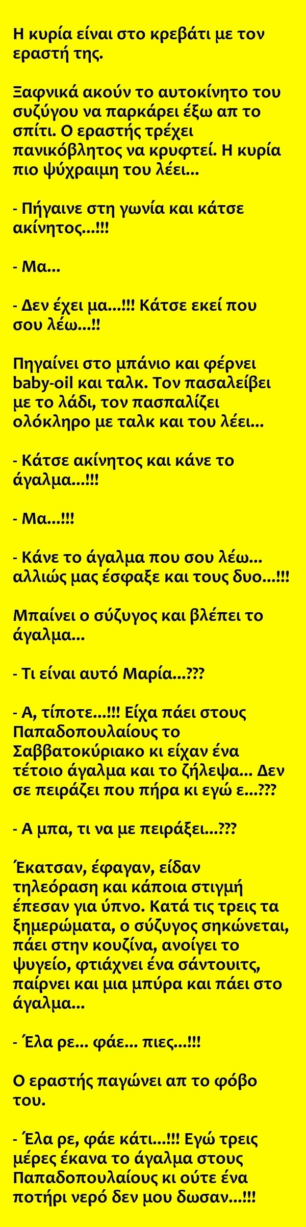 Η κυρία είναι στο κρεβάτι με τον εραστή της…