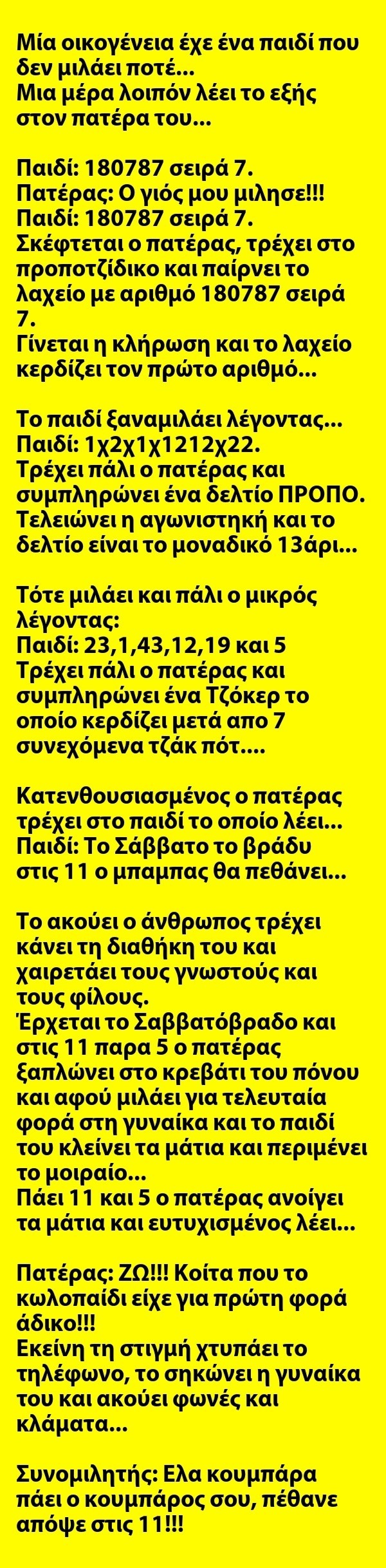 Lifestyle ΑνέκδοταΚΟΡΥΦΑΙΟ ΑΝΕΚΔΟΤΟ: Μία οικογένεια έχει ένα παιδί που δεν μιλάει ποτέ… access_time9 έτη πριν 1069.GR