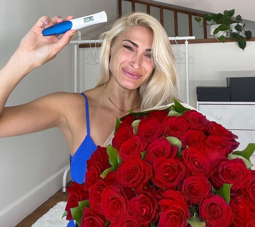 Η Ιωάννα Τούνη μοιράστηκε τα ευχάριστα νέα με μια φωτογραφία της τραβηγμένη πριν από 3 μήνες, όπου κρατά συγκινημένη στα χέρια της το θετικό τεστ εγκυμοσύνης, αλλά και μια ανθοδέσμη με τριαντάφυλλα.