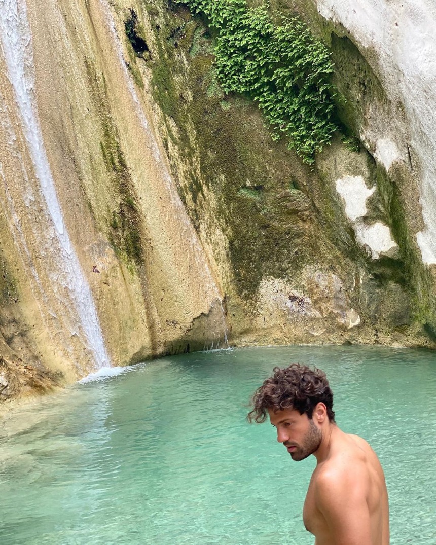Ο Κωνσταντίνος Αργυρός ποζάρει στους καταρράκτες του Νυδρί.
