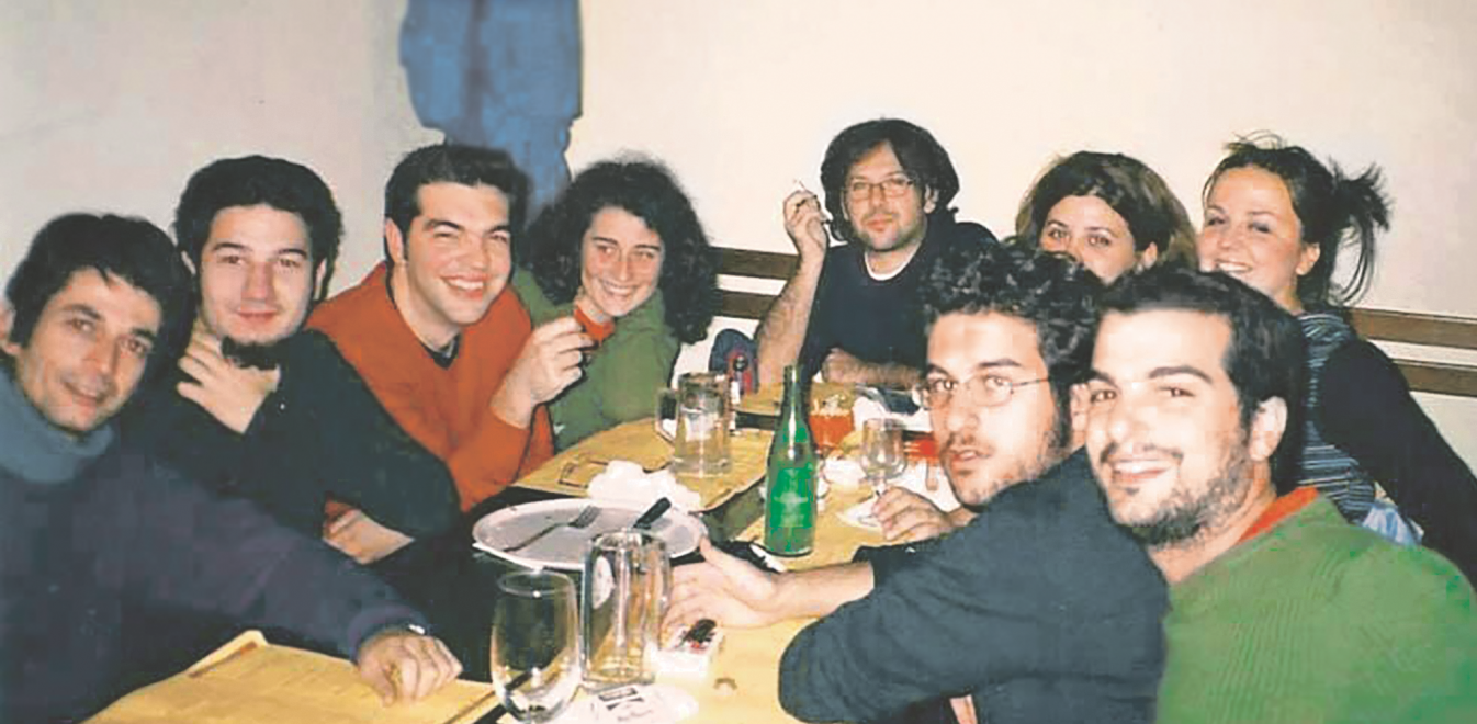 Δίπλα στον Σακελλαρίδη, ο νυν κυβερνητικός εκπρόσωπος ∆ηµήτρης Τζανακόπουλος. Μόλις 20 χρόνων τότε, ήταν φοιτητής Νοµικής στο Πανεπιστήµιο Αθηνών. Πίσω τους ξεχωρίζει η νυν υπουργός Μακεδονίας-Θράκης Ελευθερία Χατζηγεωργίου, που τότε ήταν 23 ετών και φοιτήτρια -στα τελειώµατα- της Γαλλικής Φιλολογίας στο ΑΠΘ. Από την άλλη πλευρά της φωτογραφίας είναι ο Νίκος Καρανίκας. Πολλά έχουν γραφτεί για τον «πρώην µπάρµαν», που τώρα είναι σύµβουλος στρατηγικής στο Μέγαρο Μαξίµου. Στη Θεσσαλονίκη, πάντως, ο Ν. Καρανίκας το 2002 ήταν γνωστός ως αρνητής στράτευσης, αφού η σύλληψή του είχε πυροδοτήσει σειρά εκδηλώσεων αλληλεγγύης και πολλές συζητήσεις για τη στρατιωτική θητεία. ∆ίπλα του εικονίζεται ο 19χρονος Νάσος Ηλιόπουλος, πρώην υφυπουργός Εργασίας και νυν υποψήφιος για δήµαρχος Αθηναίων. Τότε σπούδαζε στο τµήµα Πληροφορικής του Οικονοµικού Πανεπιστηµίου Αθηνών.
