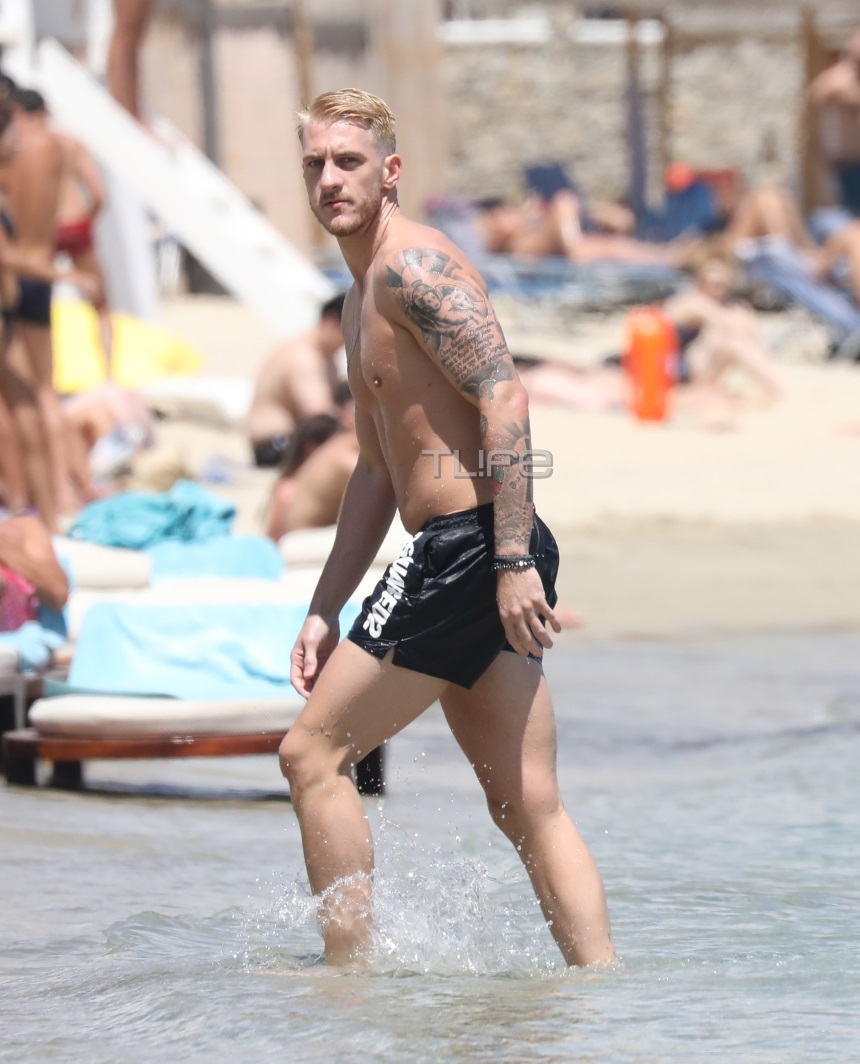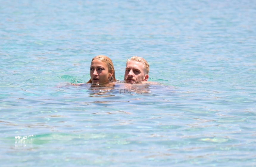 Ο φωτογραφικός φακός του TLIFE τους απαθανάτισε στην παραλία του Ορνού, μπροστά από το Kuzina Mykonos, να απολαμβάνουν τις βουτιές τους στη θάλασσα και να δείχνουν πιο ερωτευμένοι από ποτέ. Ο 29χρονος μπασκετμπολίστας δεν κρύβει την αδυναμία που έχει στο κορίτσι του και γι’ αυτό δεν έφυγε λεπτό από το πλευρό της, ενώ και η 25χρονη απέδειξε για μια ακόμα φορά πώς δεν έχει μάτια για άλλον, αφού ήταν αρκετά διαχυτική απέναντί του.