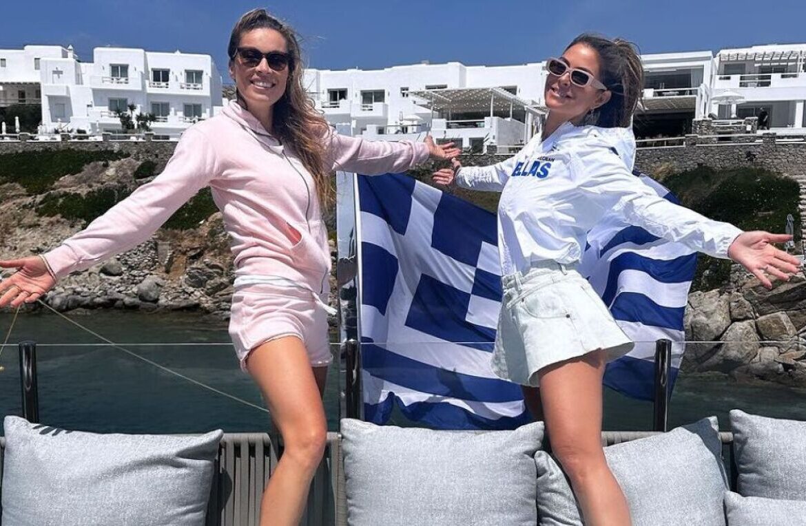 Οι δύο γυναίκες φωτογραφήθηκαν η μία δίπλα στην άλλη, ενώ πίσω τους υπάρχει η γαλανόλευκη σημαία. Το στιγμιότυπο δημοσίευσε στον προσωπικό της λογαριασμό στο Instagram η Μαριέττα Χρουσαλά.