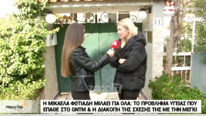 Μετά την αποχώρηση της από το GNTM η Μικαέλα Φωτιάδη μίλησε στην κάμερα του Happy Day και αναφέρθηκε στο πρόβλημα υγείας που αντιμετώπισε μέσα στο σπίτι του ριάλιτι.