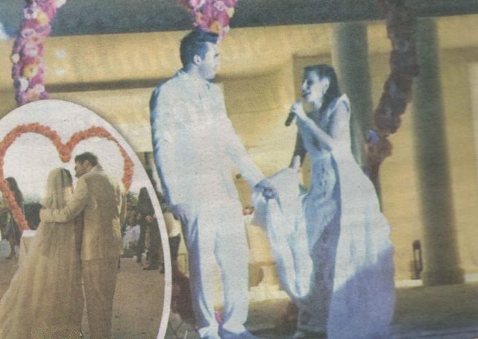Ο γάμος τους τελέστηκε σε πολύ στενό κύκλο και ακολούθησε μικρή δεξίωση στο πατρικό σπίτι της νύφης, στην Εκάλη. Η εντυπωσιακή έπαυλη του ζεύγους Βλαχάκη, που είχε χτιστεί στα χρόνια της ευδαιμονίας, καθώς ο Τάκης Βλαχάκης με τον αείμνηστο αδερφό του Μπούκη είχαν στο παρελθόν δραστηριοποιηθεί σε εργοστάσια μπισκότων στην Αργεντινή, είχε στολιστεί με κόκκινα τριαντάφυλλα, ενώ μία τεράστια καρδιά – αψίδα δέσποζε στην είσοδο της οικίας, από όπου οι νεόνυμφοι έκαναν μαζί την εμφάνισή τους.