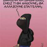 Σχολιάζοντας τα επεισόδια σχεδίασε έναν κουκουλοφόρο με ρόπαλο στο χέρι, να εκφράζει τη δική του «άποψη» για το δικαίωμα στη διαδήλωση.