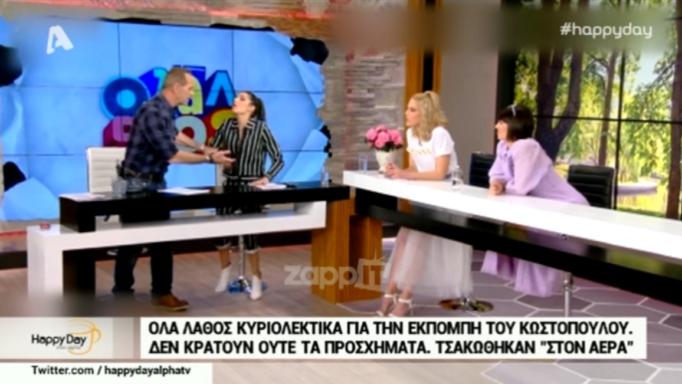 Στο Happy Day, το πρωί της Τρίτης, η Τίνα Μεσσαροπούλου αποκάλυψε το πλούσιο παρασκήνιο: «Την Πέμπτη παραιτήθηκε η αρχισυντάκτρια, Νάνσυ Νικολαΐδου, την οποία αποκάλεσε στην πρεμιέρα «ζώον» στον αέρα, ο κ. Κωστόπουλος. Είναι τέσσερα τα μέτωπα που έχουν ανοίξει εκεί και δεν ξέρουν από πού να το μαζέψουν. Βγήκε το Σάββατο στην εκπομπή της Σίσσυς Χρηστίδου και άδειασε το κανάλι ότι δεν υπήρξαν πρόβες. Έκαναν μόνοι τους πρόβα οι άνθρωποι γιατί έλειπε στη Θεσσαλονίκη για εξτραδάκι.