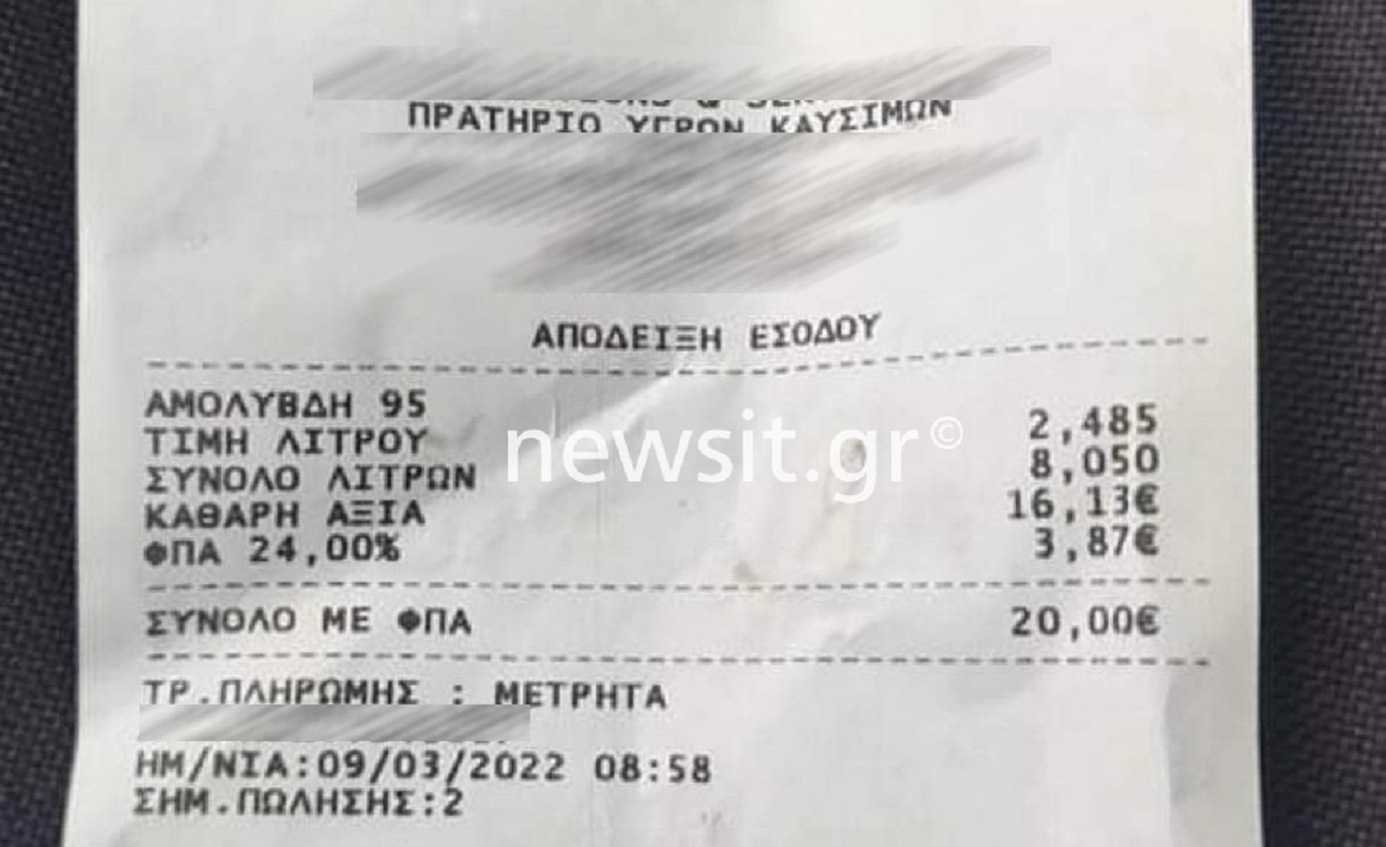 Στα 2,48 ευρώ το λίτρο έφτασε η απλή αμόλυβδη όπως βλέπετε, στην σημερινή απόδειξη που έστειλε ο αναγνώστης του newsit.gr