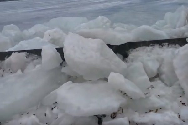 Σοκαρισμένοι κάτοικοι της πολιτείας της Νέας Υόρκης είδαν ξαφνικά τεράστια κομμάτια πάγου να… πετάγονται έξω από τη λίμνη και να πέφτουν με δύναμη στο οδόστρωμα.