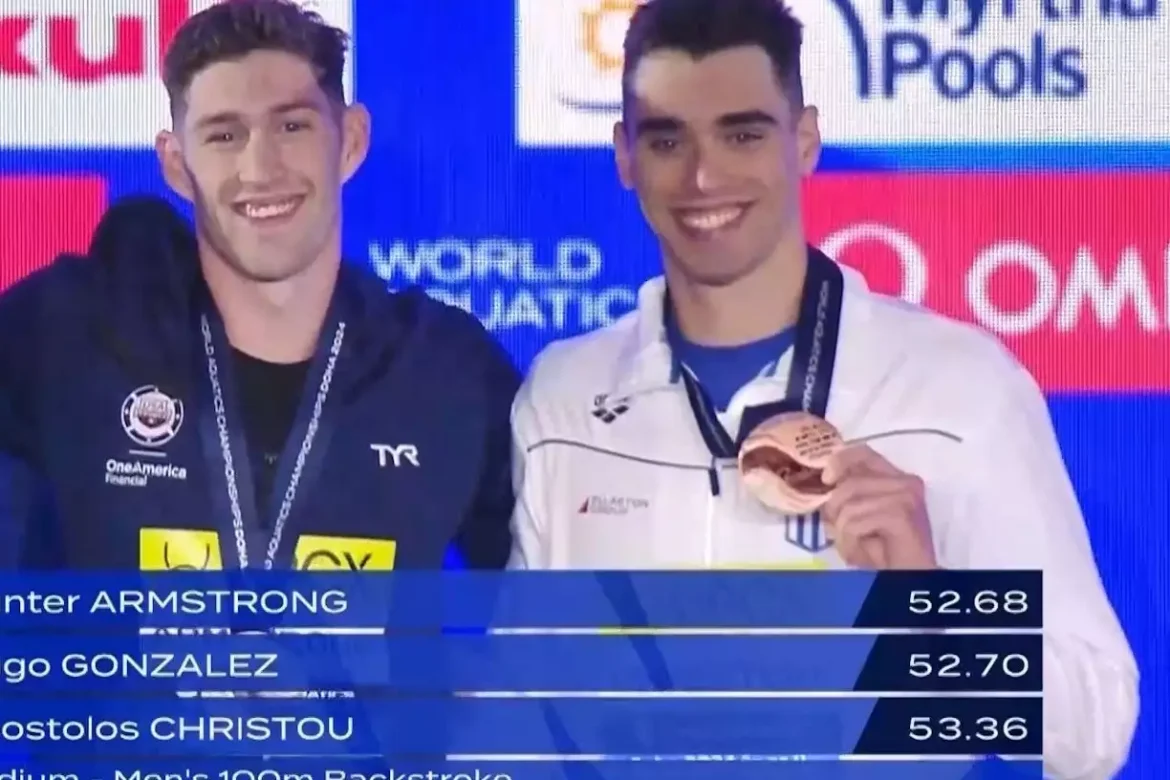Ο Απόστολος Χρήστου κατέκτησε το χάλκινο μετάλλιο στον τελικό των 100μ. ύπτιο στο παγκόσμιο πρωτάθλημα υγρού στίβου, με τον Βαγγέλη Μακρυγιάννη να τερματίζει δύο εκατοστά πιο αργά, στην 4η θέση.
