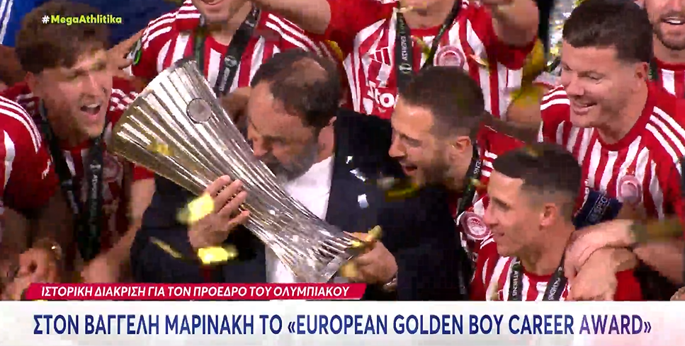Η διάσημη ιταλική αθλητική εφημερίδα «Tuttosport», θα απονείμει στον Βαγγέλη Μαρινάκη το βραβείο «European Golden Boy Career Award». Οπως ανακοινώθηκε, πρόκειται για «μια αναγνώριση της αφοσίωσής του Βαγγέλη Μαρινάκη στον Ολυμπιακό, που κορυφώθηκε το 2024 με τις κατακτήσεις του Conference League και του Youth League.