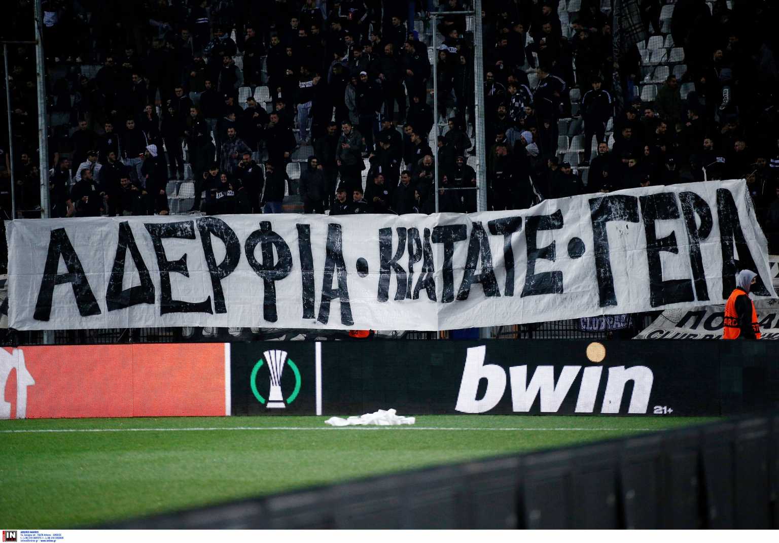 Πιο συγκεκριμένα, κάποιοι… τραγικοί οπαδοί εμφάνισαν το επαίσχυντο πανό στις εξέδρες τη; Τούμπας, που έγραφε «Αδέρφια κρατάτε γερά», κάτι που καταγράφηκε από την αστυνομία, με την Εισαγγελία Θεσσαλονίκης να ξεκινά προκαταρκτική εξέταση και τον Τάκη Θεοδωρικάκο να ζητά να βρεθούν οι υπεύθυνοι.