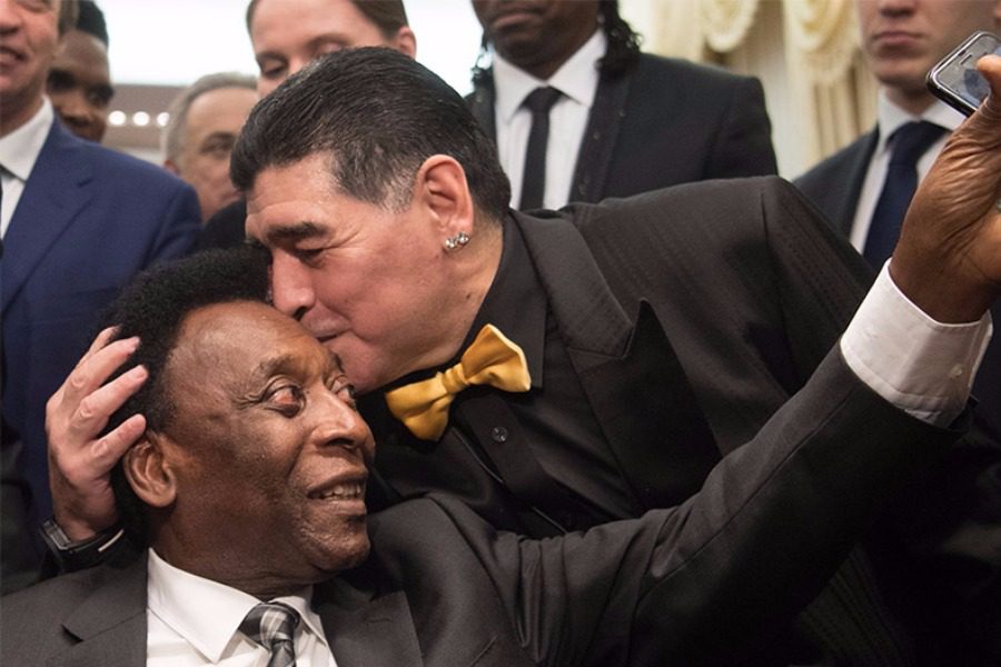 Πλήθος βετεράνων άσων του παγκοσμίου ποδοσφαίρου έδωσαν το «παρών» στην κλήρωση της τελικής φάσης του Μουντιάλ 2018, στο Κρεμλίνο. Κανένας, ωστόσο, δεν θα μπορούσε να λάμψει περισσότερο από τους δύο απόλυτους «μύθους» όλων των εποχών: τον Αργεντινό Ντιέγκο Αρμάντο Μαραντόνα και τον Βραζιλιάνο Πελέ.