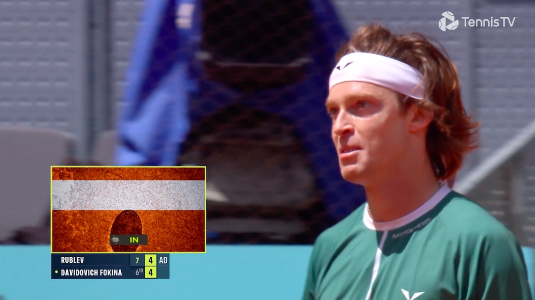 Με τον Αντρέι Ρουμπλεφ να βρίσκεται με πλεονέκτημα στο service του Αλεχάνδρο Νταβίντοβιτς Φοκίνα με τα games να είναι 4-4 στο 2ο set, ο Ισπανός άφησε την μπάλα, σε συνδυασμό με το call για αούτ του επόπτη, με την μπάλα να σκάει μπροστά στα μάτια του Φοκίνα. Ωστόσο, ο Ρούμπλεφ ζήτησε challenge από το οποίο δικαιώθηκε με την μπάλα να ακουμπάει χιλιοστά τη βασική γραμμή και τον Ρώσο να κάνει το 5-4 και στη συνέχεια το 6-4 φτάνοντας στην πρόκριση για τον 4ο γύρο.