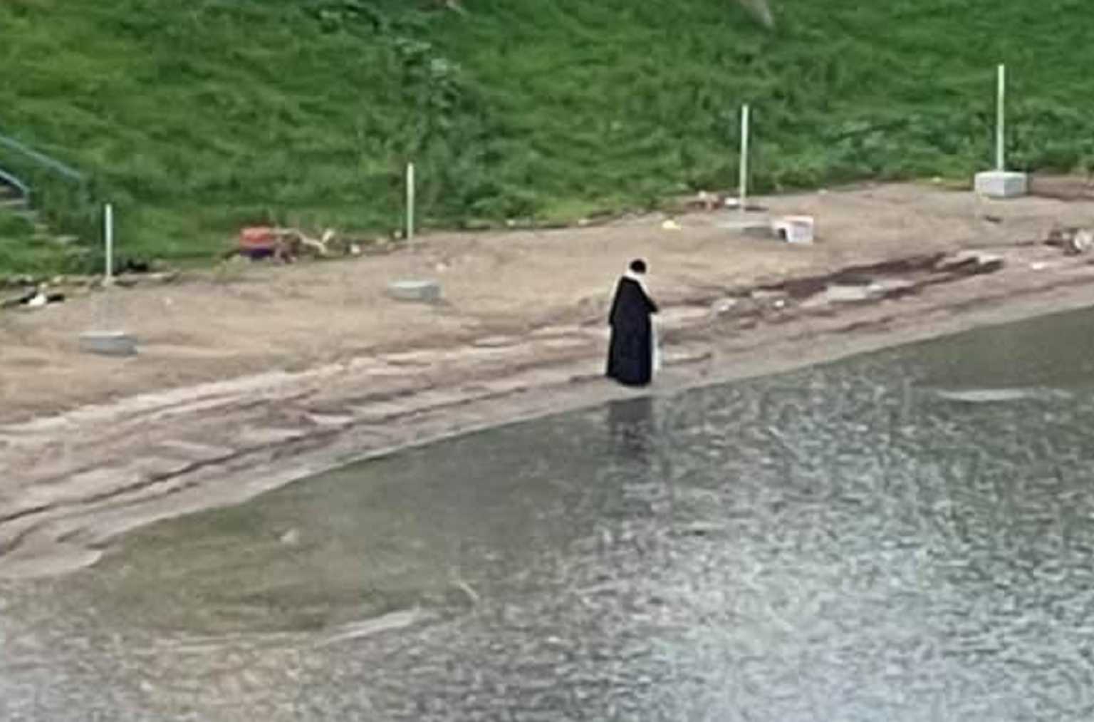 Μια εικόνα χίλιες λέξεις! Ο ιερέας αρκετή ώρα μετά το τέλος της Θείας Λειτουργίας των Θεοφανείων και του Μέγα Αγιασμού, ρίχνει στη θάλασσα ένα ποτήρι αγιασμό για να αγιαστούν τα ύδατα. Τα φετινά Θεοφάνεια είναι διαφορετικά και η παρακάτω εικόνα συνοψίζει όλα όσα ζούμε