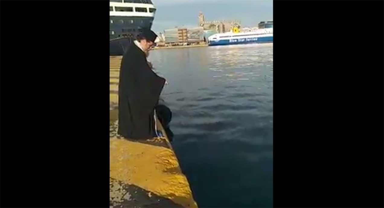 Ο ιερέας, που σύμφωνα με πληροφορίες συνοδευόταν από την πρεσβυτέρα και ελάχιστους πιστούς φαίνεται μόνος στο βίντεο να τελεί κανονικά τον αγιασμό των υδάτων.