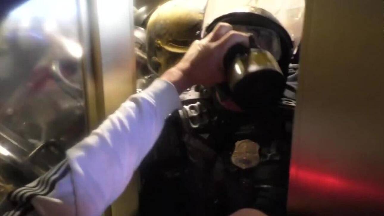 Ένα τρομακτικό βίντεο από τις ταραχές της Τετάρτης στο Καπιτώλιο ήρθε τις τελευταίες ώρες στη δημοσιότητα και δείχνει έναν αξιωματικό της αστυνομίας να συντρίβεται ανάμεσα στα κύματα των ακροδεξιών και των αστυνομικών που υπερασπίζονται το κτήριο.